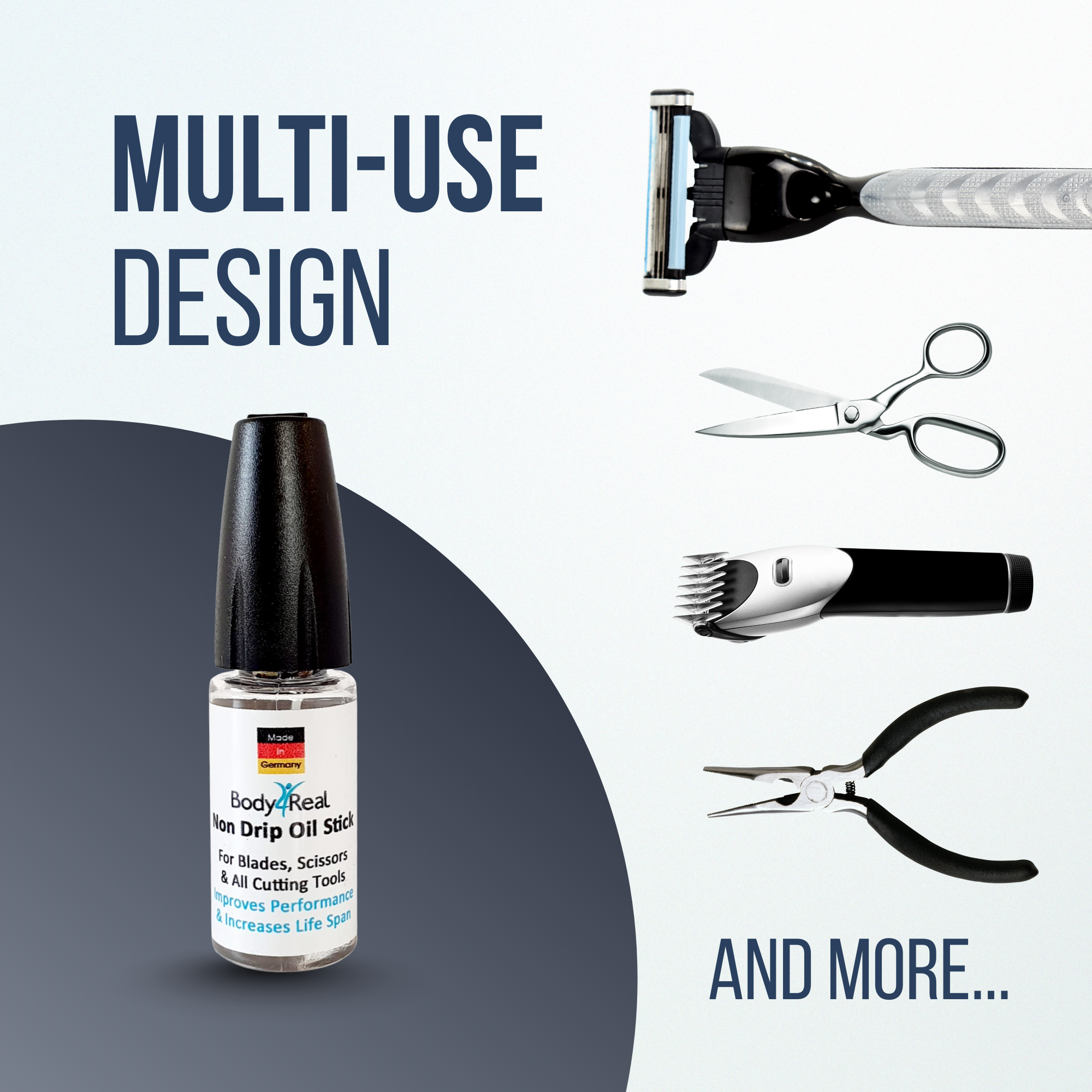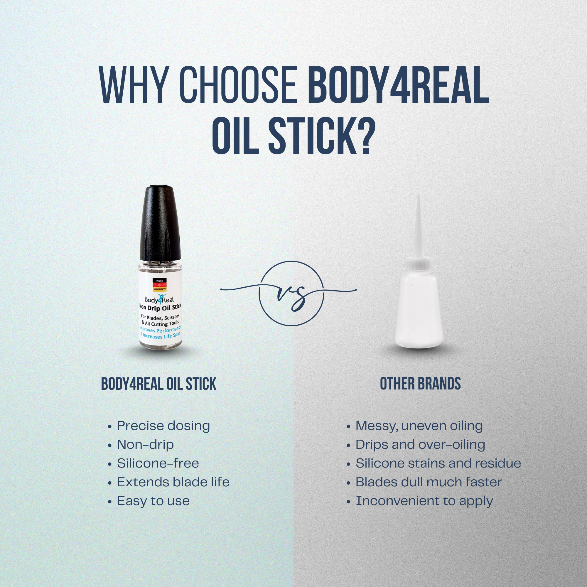 Body4Real's Oil Stick is a high quality, non-drip clipper oil designed specifically for use on clipper, shaver and trimmer blades. In fact, it can be used on any cutting instrument from scissors to plyers. Well oiled blades improve cutting performance and extend blade life and ideally you should oil blades after each use. This High tec oil is superior to others as it contains no silicone and is dispensed via an anti-drip pen.