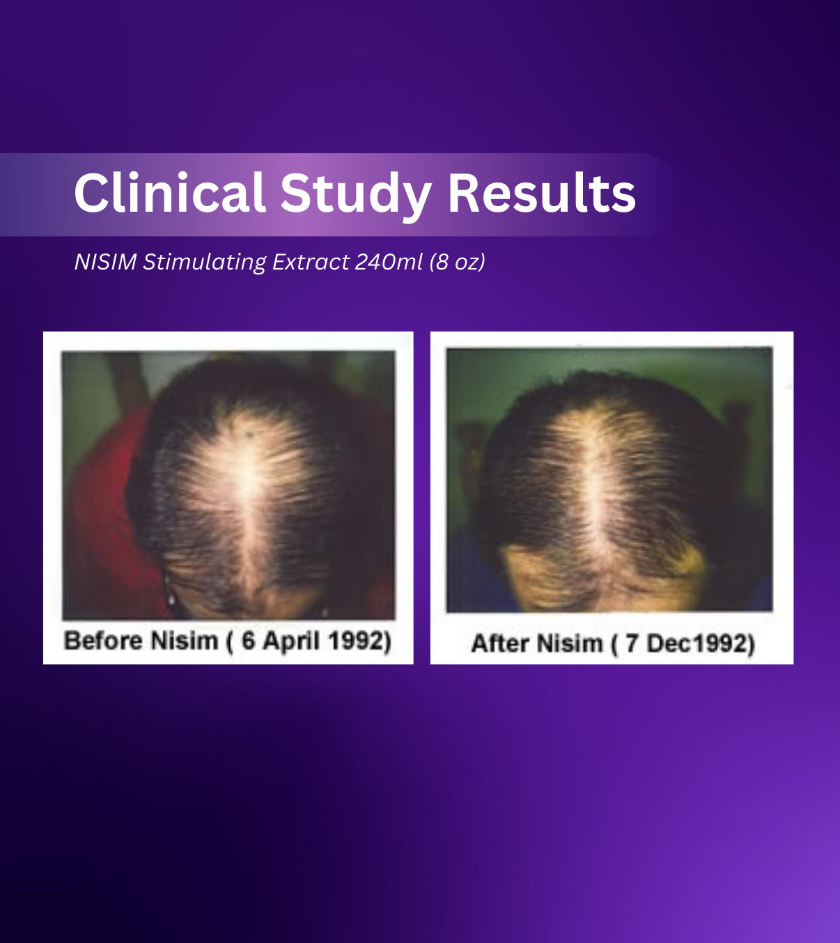 I have had severe hair loss following 3 major spinal ops and Nisim Hair Loss Stimulating Extract was recommended to me by a friend who had suffered a similar problem. I have been using Nisim Shampoo along with the Stimulating Extract for 6 weeks now and I am delighted that my hair has started to grow again on the bald patches of my head. I would definitely recommend Nisim products, it has certainly helped with my hair loss problems.